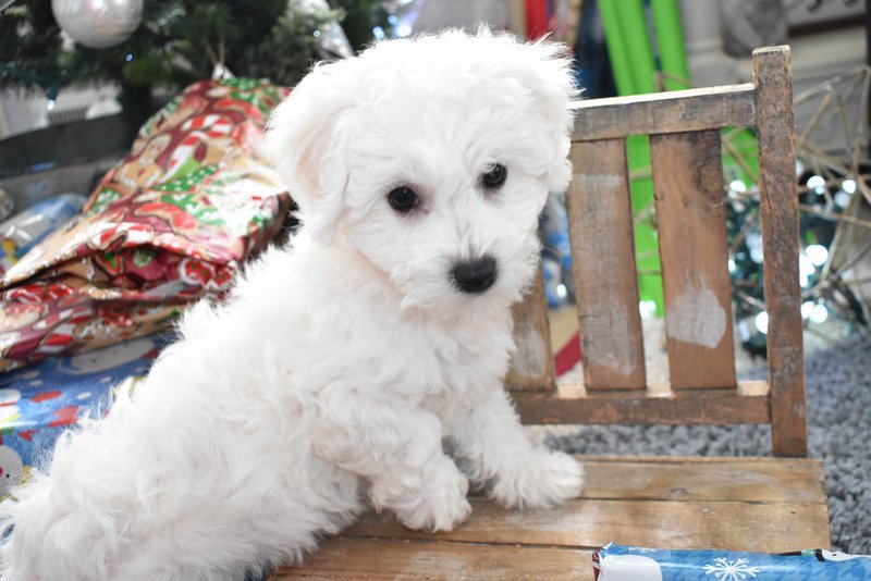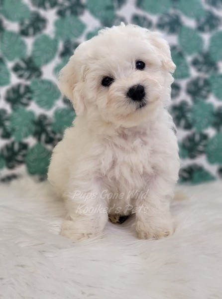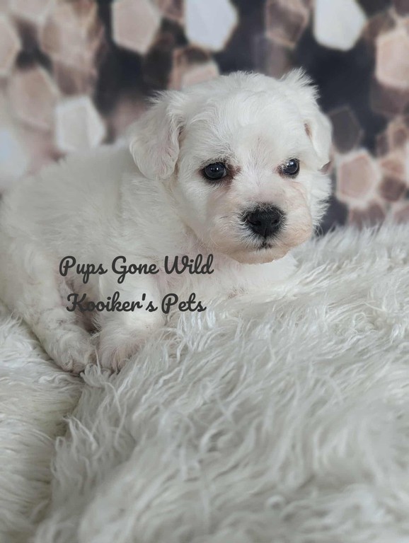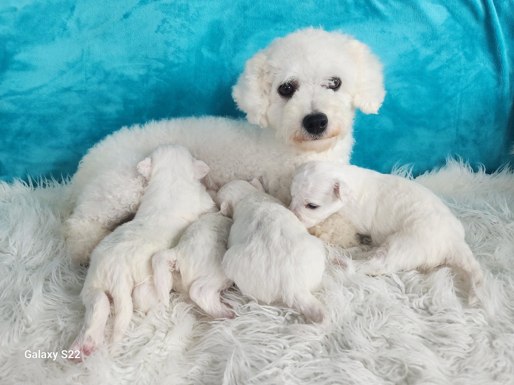 and do well with other dogs. All Bichon Frise's are pure white, if there is any color at all it is a very small amount of apricot on the ears