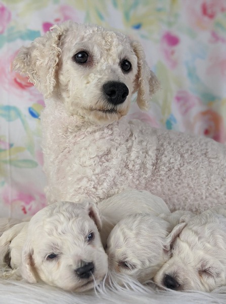 These puppies are non-shedding and hypoallergenic! They love to play and romp, but also make a good lap dog when it's nap time! They are perfect for families with kids