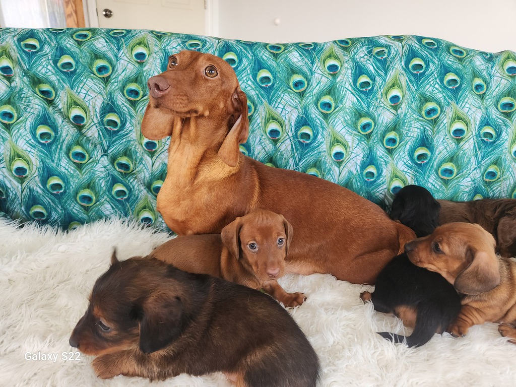 Miniature Dachshunds are quite the little clowns. They love to romp and play and are super silly at times. They look so funny when they run as fast as they can and their ears are flopping in the