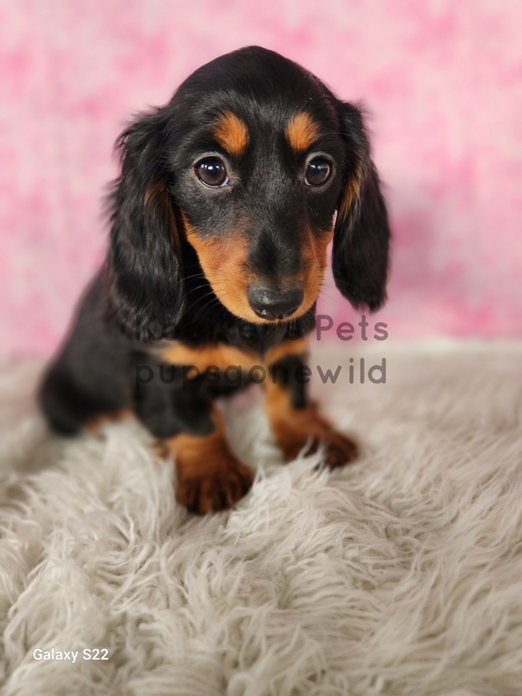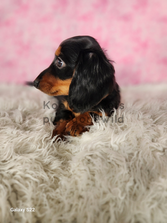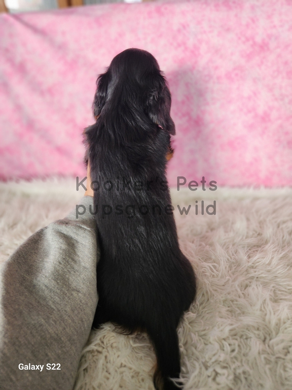 Black & Tan Longhaired. Has two series of puppy vaccinations.