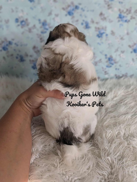 grooming. They are always colored like a Shih-tzu, but have a longer nose (which comes from the Bichon Frise). They do tend to fade as they age so keep that in mind as they grow their coloring will