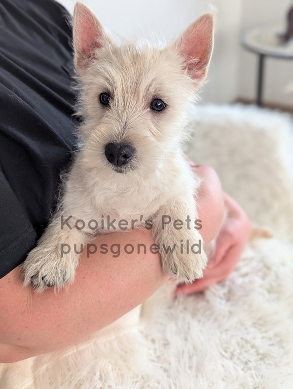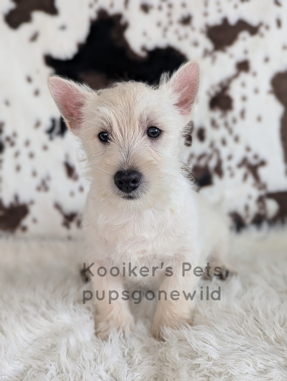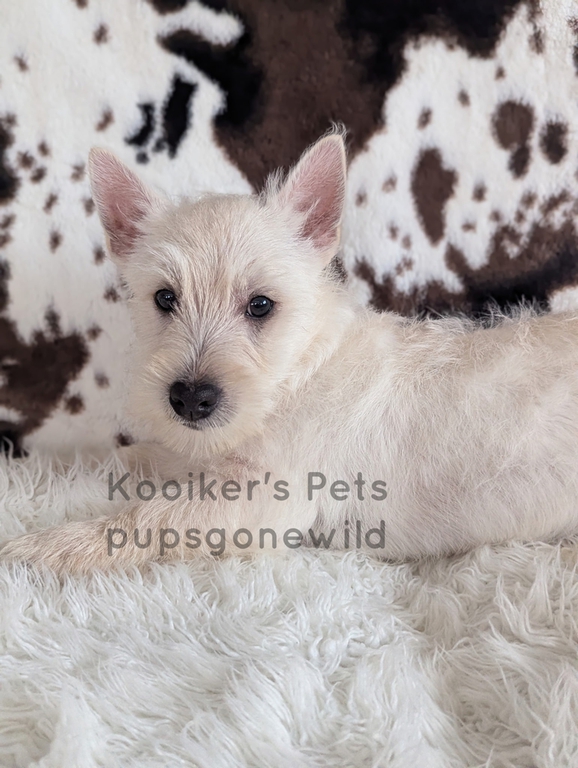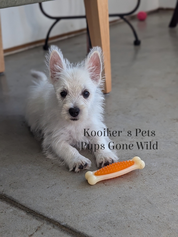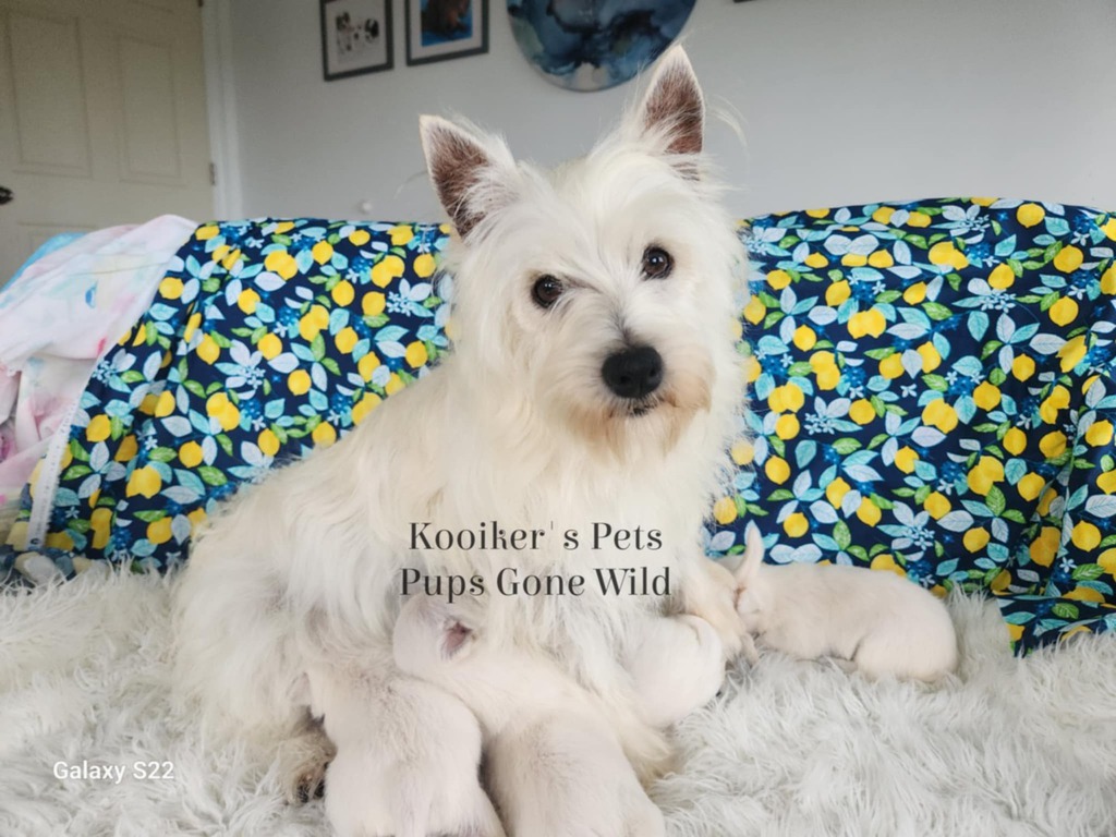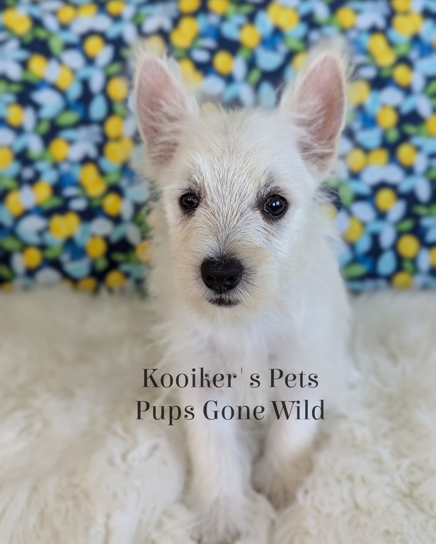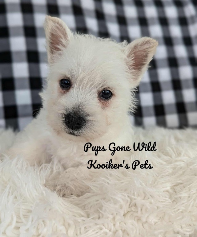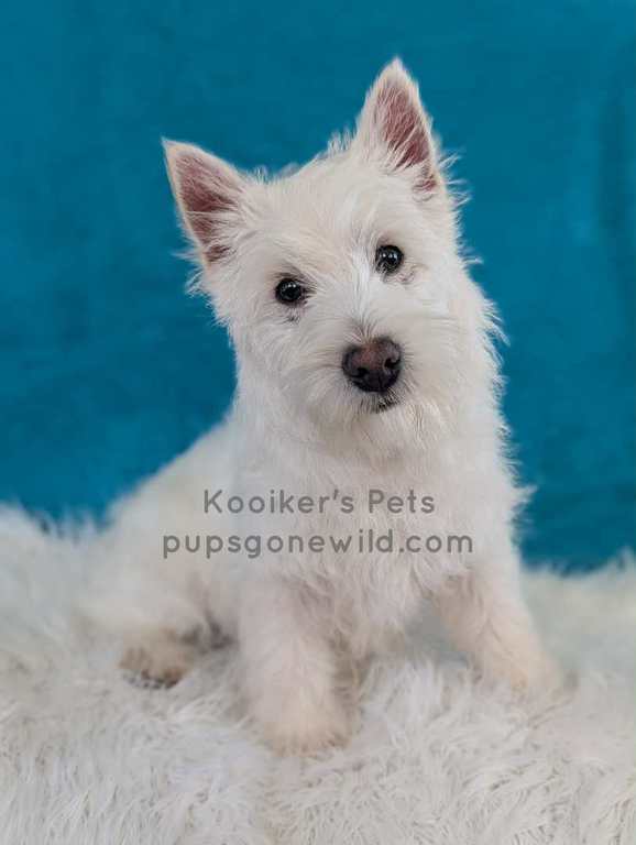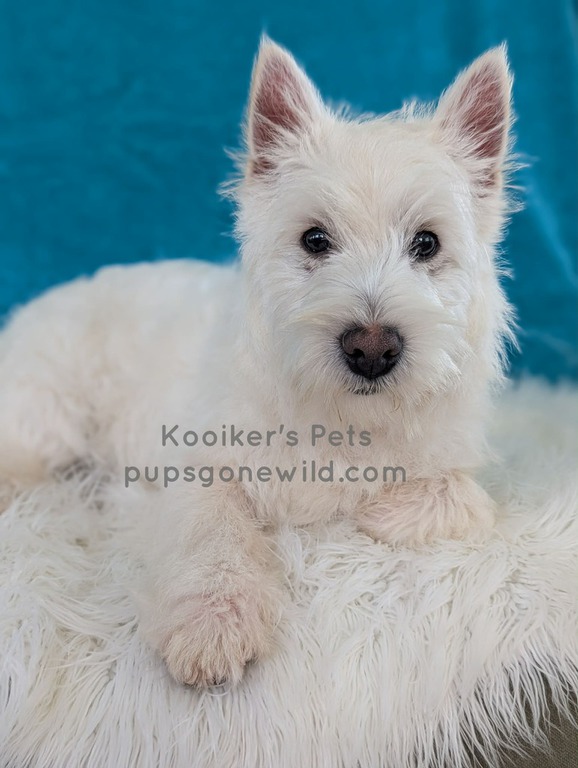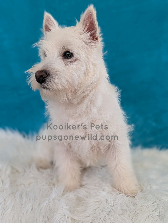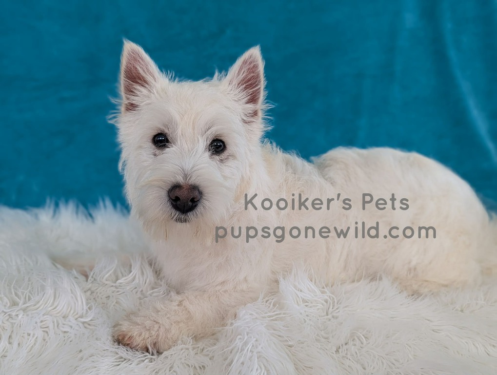 West Highland White Terriers (Westies) are a highly intelligent, smart, independent, and energetic breed. This breed is also very prey driven and will typically chase anything that runs outside. Please do research before commiting to a terrier and know that they like to be stimluated both mentally and physically. They have a double coat that consists of a course outer coat and a soft undercoat. They require brushing and clipping if you choose for grooming. These little guys are compact and sturdy and usually average around 15-20 pounds for size.
